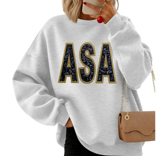 ASA Women's Oversized Sequin & Glitter applique Crewneck
