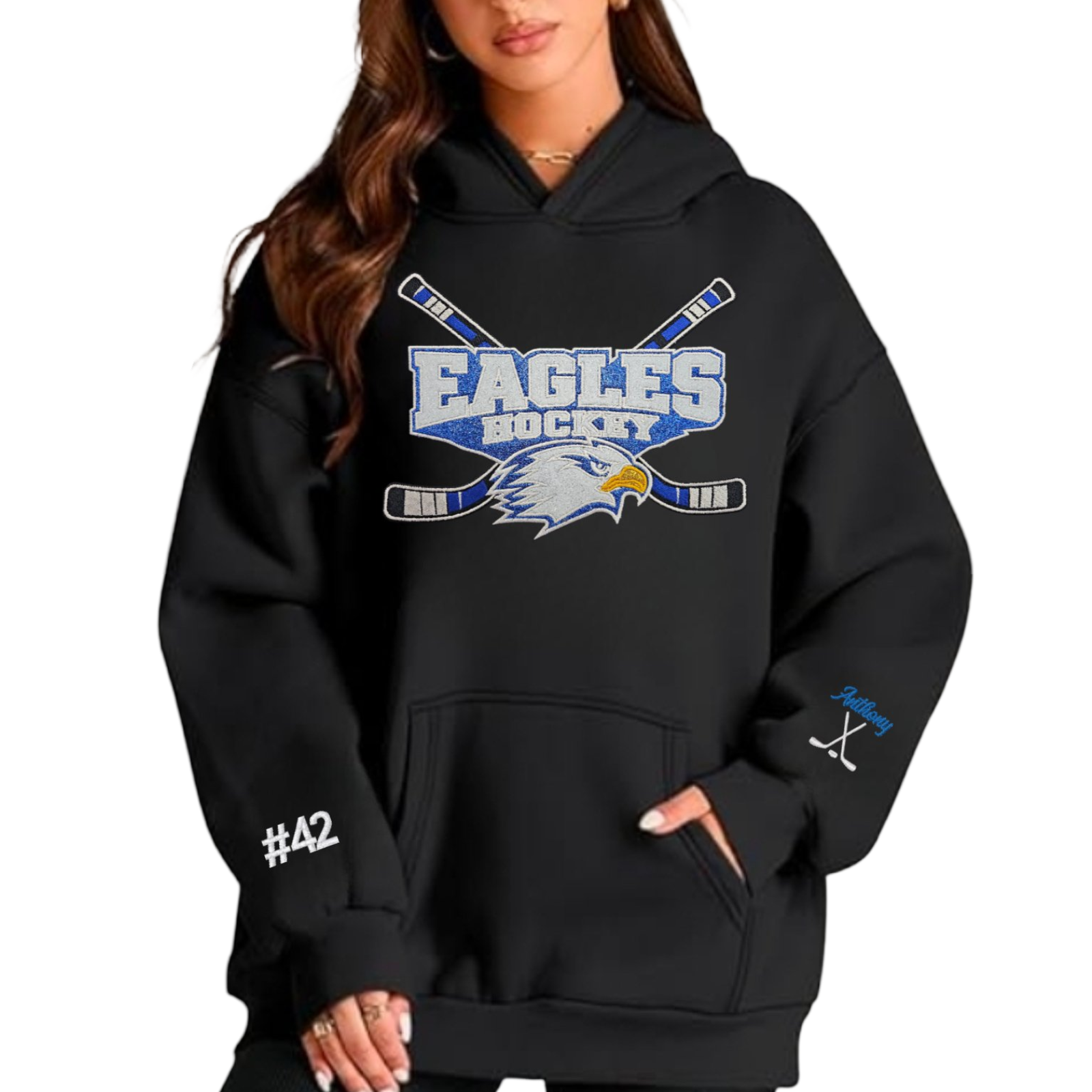 Becker Big Lake Hockey ✨️ Glitter Applique Oversized Pullover Hoodie